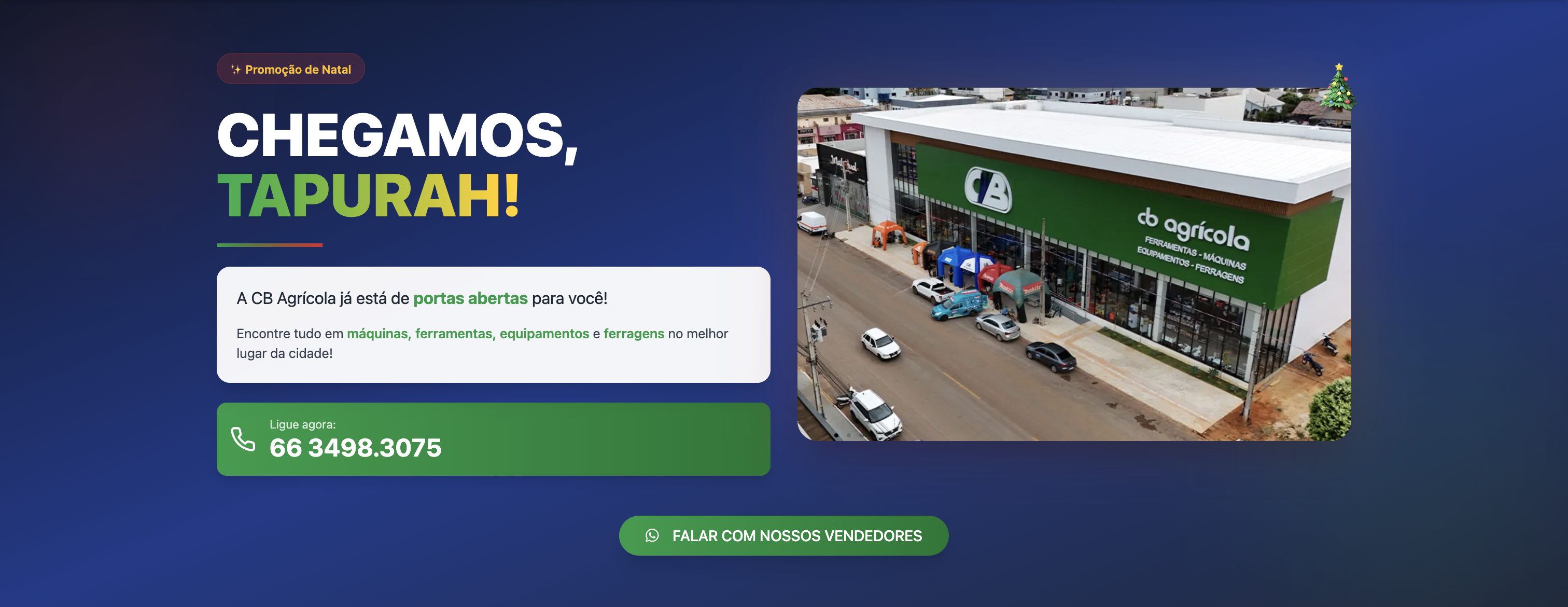 A CB Agrícola é uma empresa com mais de 30 anos de história, fundada em 1990 por três jovens empreendedores do Mato Grosso. Com o objetivo de atender às crescentes demandas do agronegócio local, a empresa iniciou suas atividades em Primavera do Leste e, ao longo dos anos, expandiu sua presença, estabelecendo 10 lojas em diferentes cidades do estado. Hoje, a CB Agrícola se destaca pela qualidade de seus produtos e serviços, sempre buscando inovação e aprimoramento, com o compromisso de facilitar o dia a dia de seus clientes no campo e na cidade. Bem-vindo à CB Agrícola, onde tradição e modernidade se encontram!